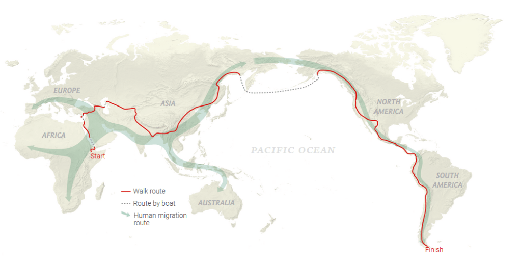 Yesterday, I discovered Paul Salopek and his Out of Eden Walk thanks to his appearance on Conversations with Tyler! The Out of Eden Walk of Salopek is a 24,000 mile trek from the Horn of Africa to the southern tip of South America, tracing the migratory routes of our earlier ancestors. He’s completed a decade walking and is currently in China.
