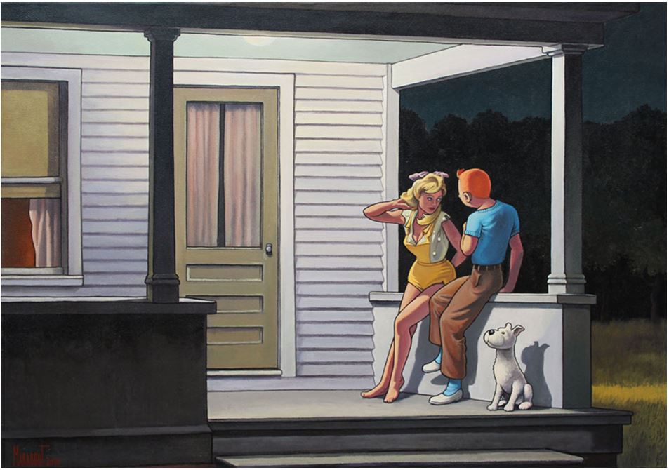Hopper’s style has been a source of inspiration for several artists. In 2021, the French artist Xavier Marabout was sued by Hopper’s heirs for his creative attempt to marry Hopper’s content with the most celebrated detective of the world – Tin Tin. Thankfully, Marabout won his case.