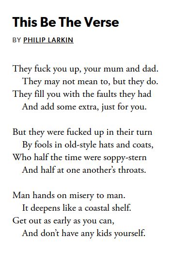 If you’re a parent, it is also useful to remember that despite all your efforts, your kids will still find your parenting unremarkable and short of their expectations. Philip Larkin summed this up well half a century ago, when he wrote: