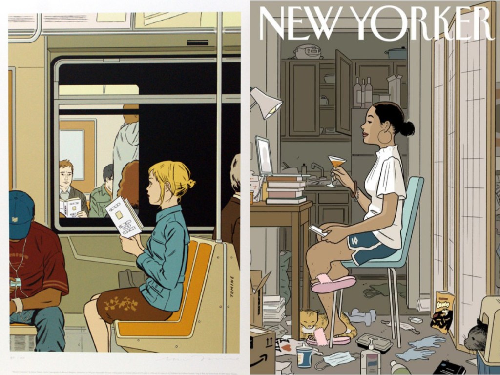 Adrian Tomine is one of my favorite comic writers. His art has a Hopperesque feature. With a minimalist style, his work often focuses on the themes of urban alienation, the complexity of human relationships, identity and heartbreak. His art also frequently appears on the cover of the New Yorker.