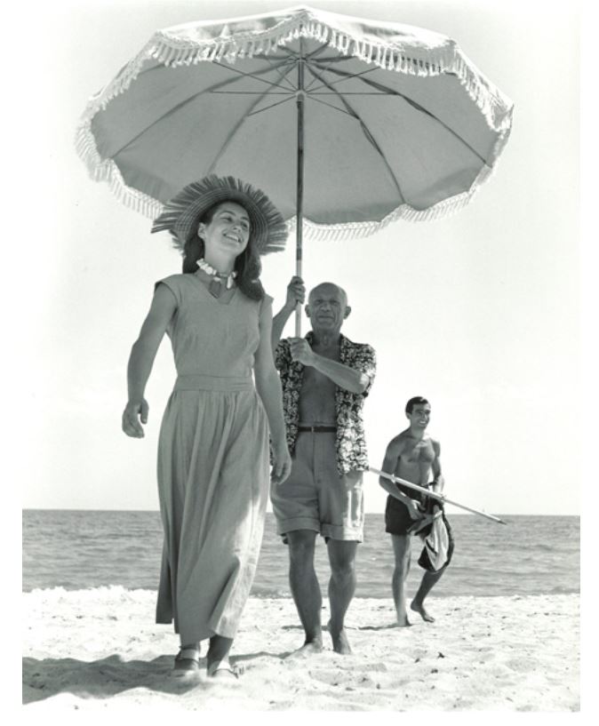 There’s a famous photograph of Robert Capa’s that has been pinned to the bulletin board above my desk for a number of years. It was taken in 1948 on a beach in France, and it shows a smiling young woman dressed in a cotton gown and a large straw hat striding forward across the sands while a sturdy-looking old man walks behind her, holding a huge umbrella over her head: a queen and her slave. The young woman is Françoise Gilot and the old man Pablo Picasso. As Robert Capa was an artist, the picture is charged with emotional complexity. At first all the viewer registers is the lit-from-within triumph in Gilot’s smile; and right behind it Picasso’s amiable servitude. But keep looking and you’ll see in Gilot’s eyes that she believes her power everlasting; and then you’ll see the cold worldliness behind Picasso’s playacting deference. It hits you full force: Gilot is Anne Boleyn in her moment of glory and Picasso the appetite-driven king before he’s had his fill of her. The photograph is so richly alive, it is actually shocking: it both excites and appalls. Most days I don’t even glance in its direction, but on the days that I do take it in, it never fails to arouse pain and pleasure, in equal parts. It’s the equal parts that’s the problem.