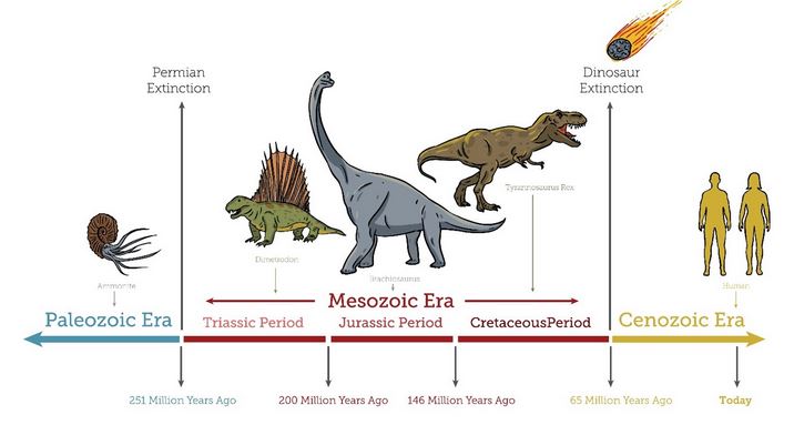 - The geological epochs relevant for dino history are the Triassic, Jurassic, and Cretaceous. During the first, they played a supporting role. At the end of the Triassic, Pangea started breaking apart, resulting in an unimaginable quantity of lava being belched out by the earth leading to the extinction of many species. The dinos somehow managed to survive this, and during the Jurassic, they thrived