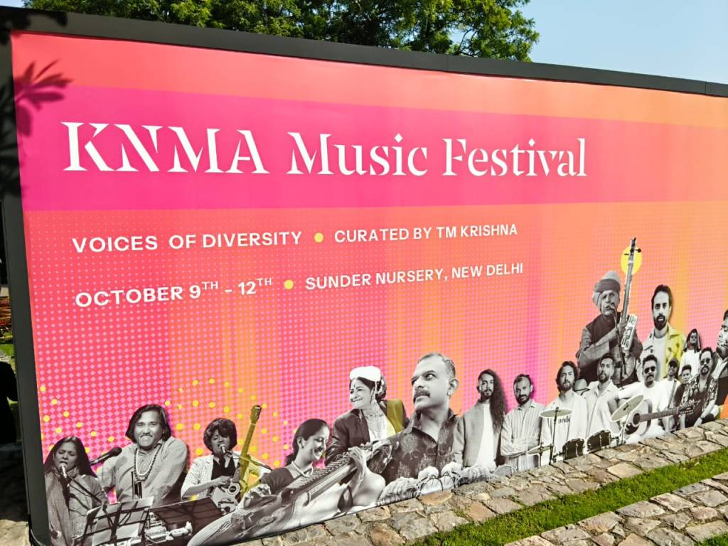 As part of the KNMA Music Festival, curated by TM Krishna, Jayanthi Kumaresh performed this morning at 7.30 am. Despite the hassle of roadblocks due to the Delhi Marathon, and the even bigger task of waking up and lugging two disgruntled kids at 6:30 a.m, we managed to make it on time..